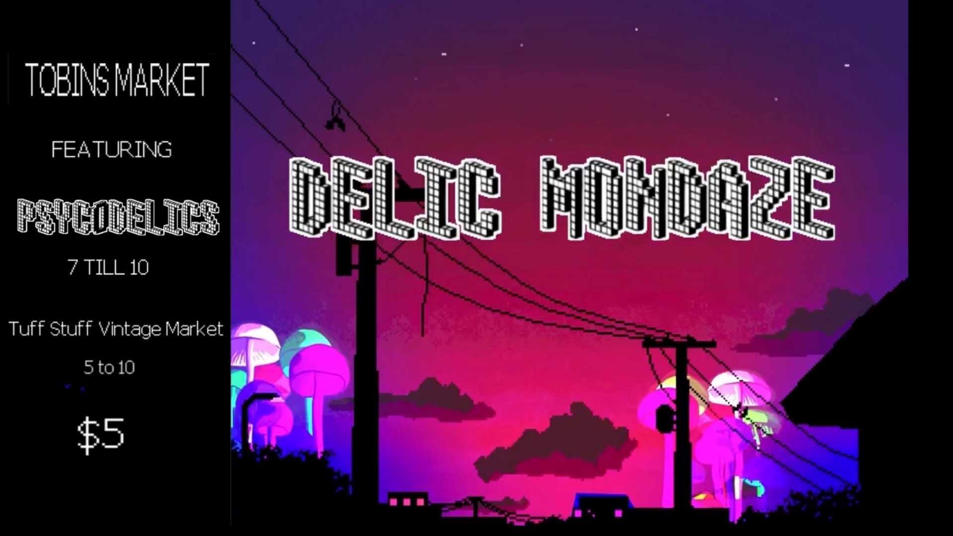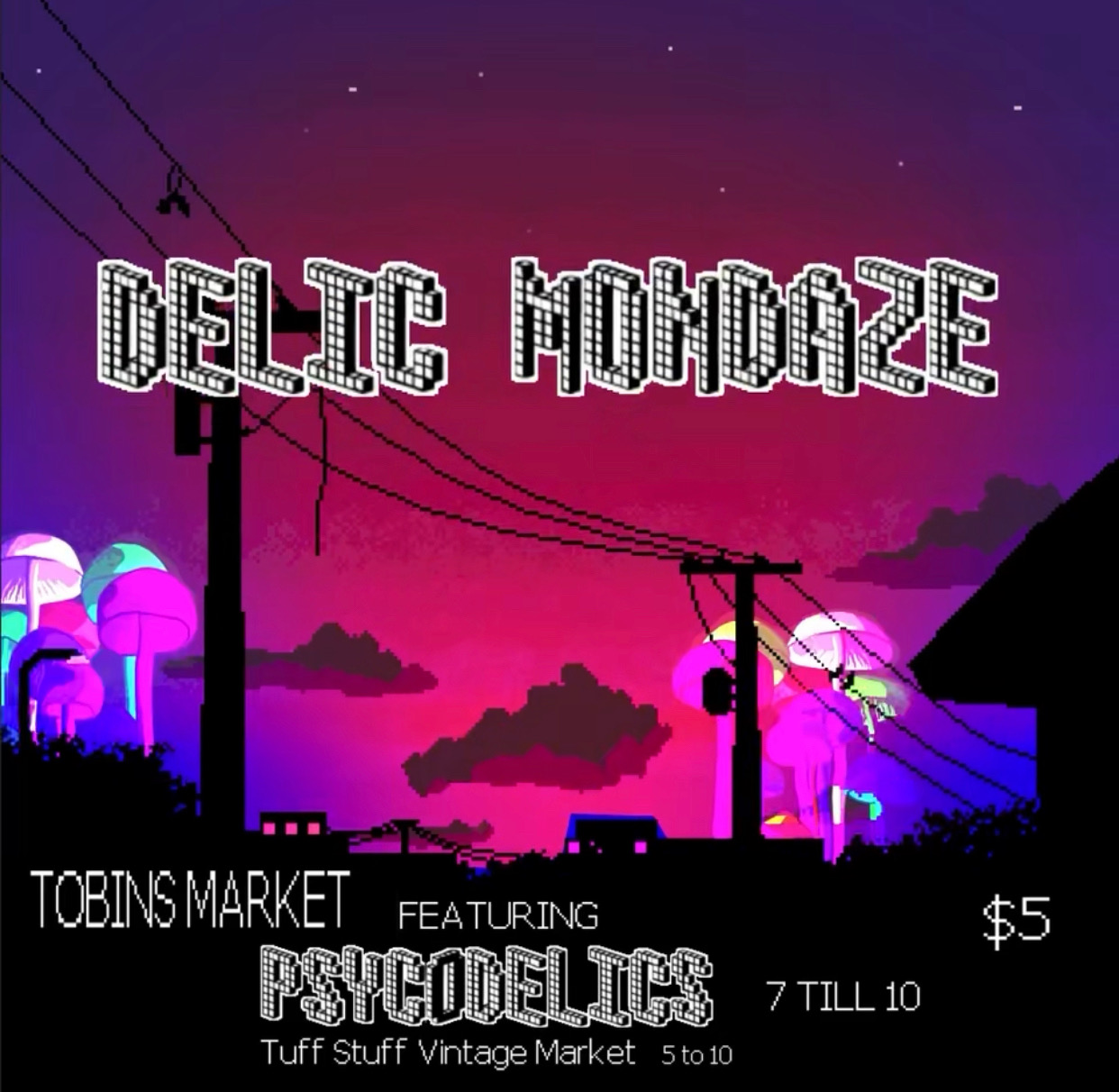 On Monday nights, Tobin’s Market hosts DELIC MONDAZE live music series. If you’re looking for some awesome live music, delicious food, great wine & beer selection, a vintage clothing pop-up, or even just a relaxing place to study or read a book, hangout with friends while enjoying a cold brew coffee, Mondays at Tobin’s Market is the answer. If you stick around for the second set, get ready to put on your funk hat and bust a move, because the Psycodelics always turn up the heat after 9pm! #seeyouattobins