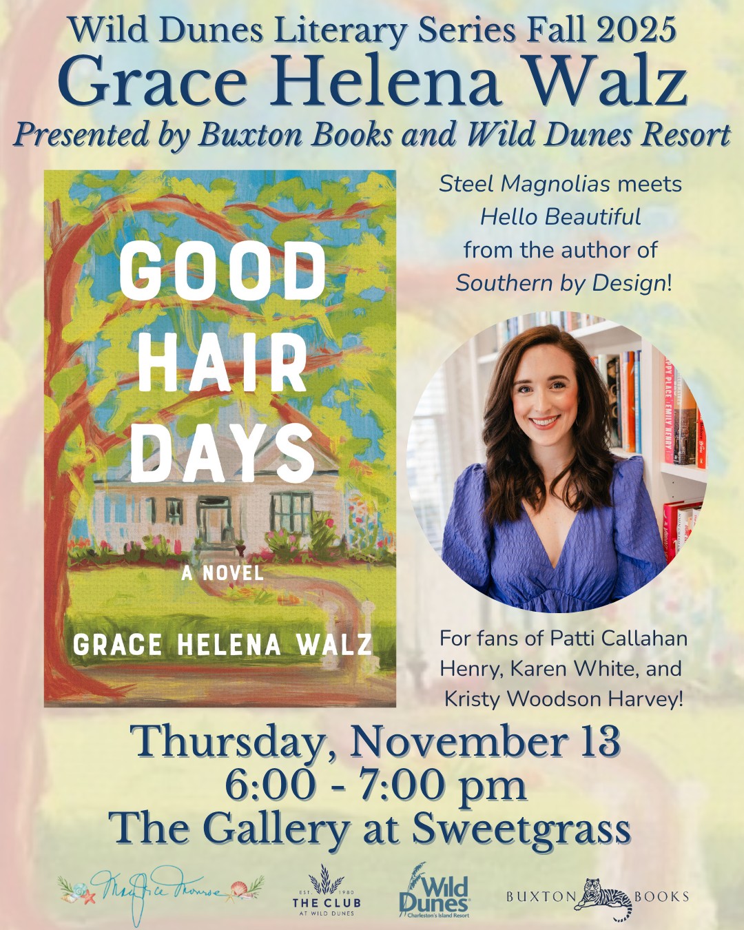 On Thursday, November 13, please join us at the beautiful Gallery at Sweetgrass Inn for an author event with Grace Helena Walz, celebrating her second novel, Good Hair Days, just two days after its release!