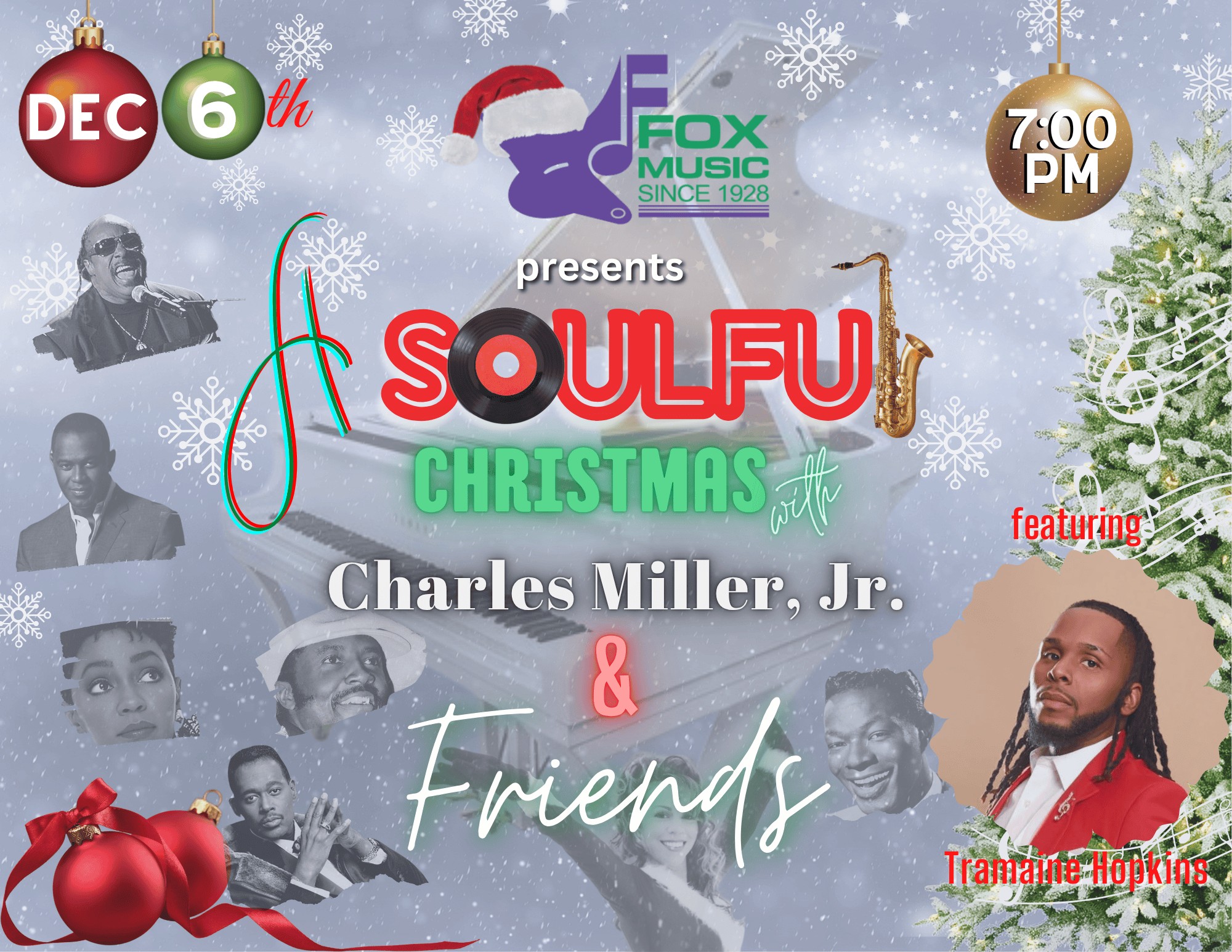 Join us at Fox Music House for a night of seasonal delights and soulful Christmas music presented by our artist-in-residence, Charles Miller Jr., and his friends. Joining them on this special night will be the incomparable voice of Tramaine Hopkins.