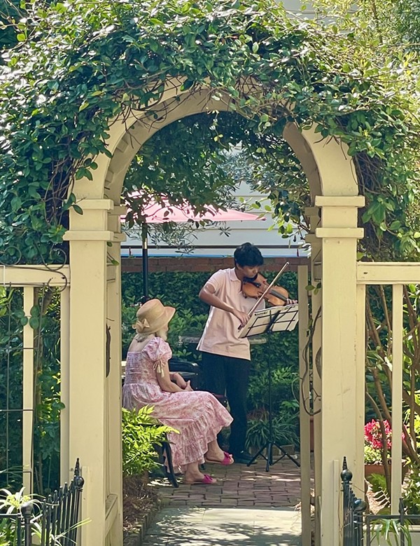 A stunning lineup is in store for you today with gorgeous homes, gardens, and club members' floral displays at each location. Additionally, we will have members of the Charleston Symphony Youth Orchestra serenading you in our gardens and plein air artists painting at various homes on the tour.