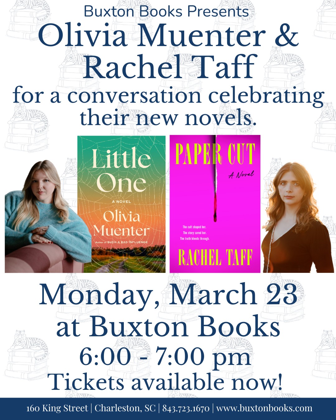 Buxton Books is excited to welcome USA Today bestselling novelist Olivia Muenter and debut novelist Rachel Taff to the bookstore for an evening celebrating their new books, Little One (Muenter) and Paper Cut (Taff).