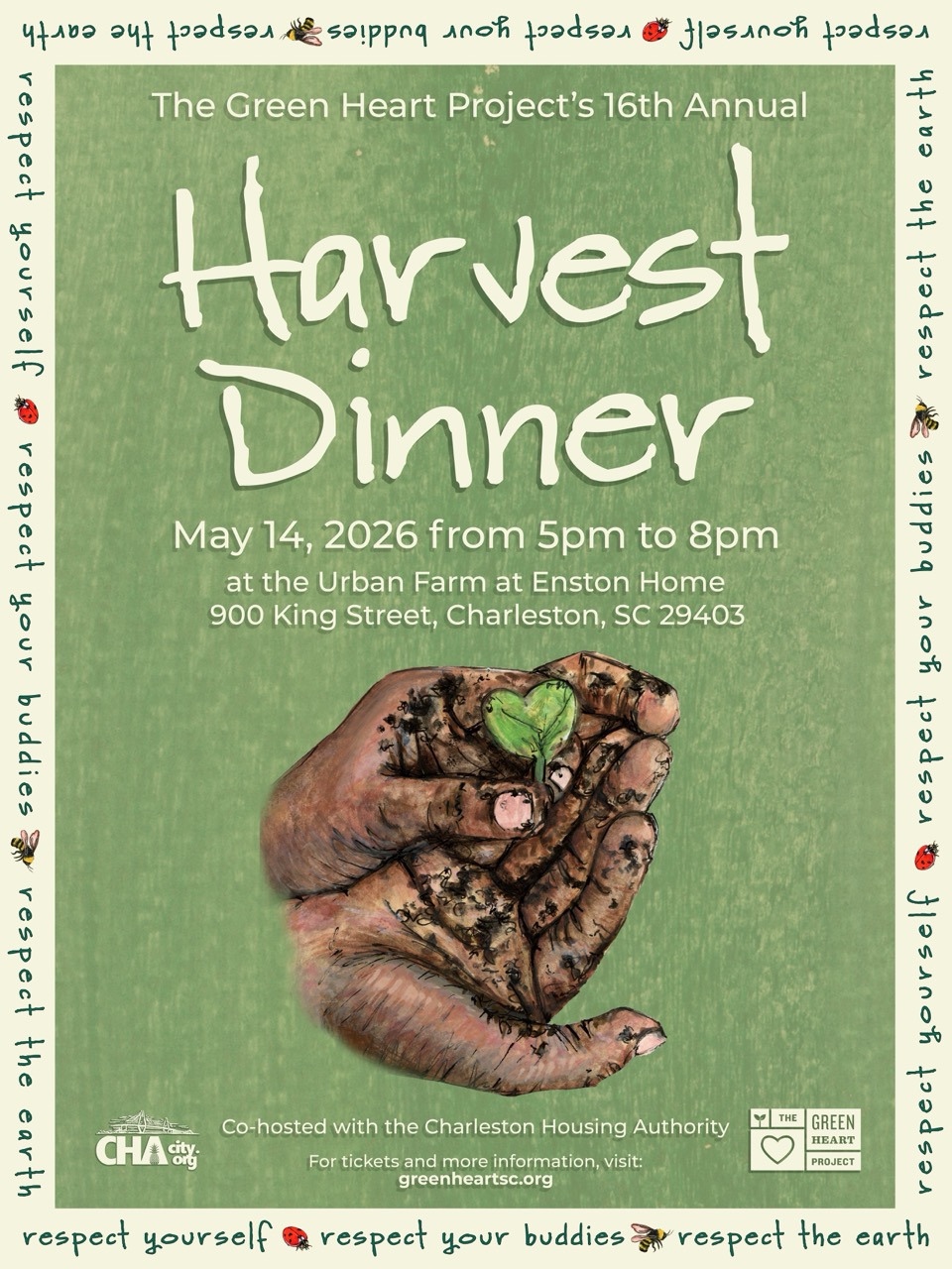 The Harvest Dinner is Green Heart Project's annual springtime event, celebrating another year of growing food, minds & community in Charleston schools. Hosted in tandem with Charleston Housing Authority, the event will showcase Green Heart's 1/2-acre, community-based Urban Farm at Enston Home, hosting 500-1,000 attendees for a garden-fresh dinner, entertainment, & family-friendly activities.