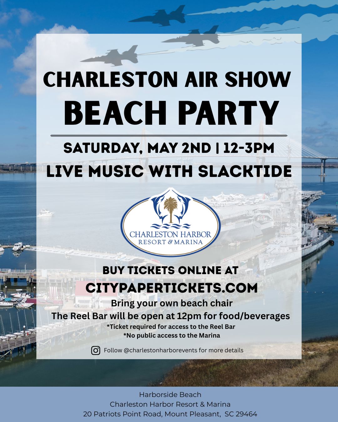 Join us for the Charleston Air Show Beach Party at Harborside Beach